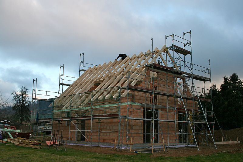 Jetzt schaut es echt schon aus wie ein Haus, nun noch die Dachpfannen drauf und dicht ist es schon mal von oben.