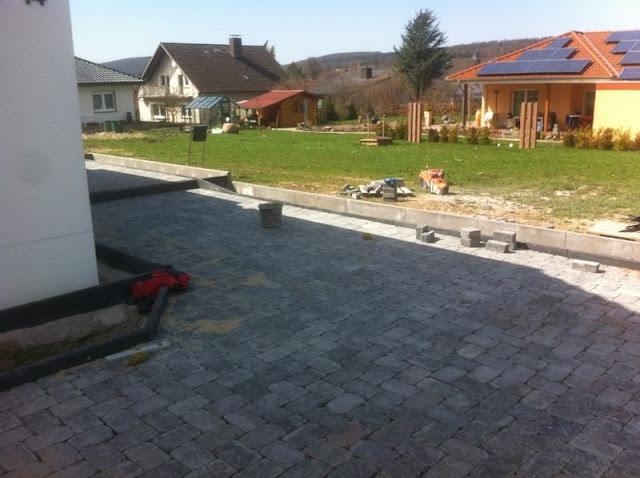 Bis auf ein paar Steine an der Einfahrt und vor der Garage war alles verlegt und dann erfolgte der Schock-Anruf: